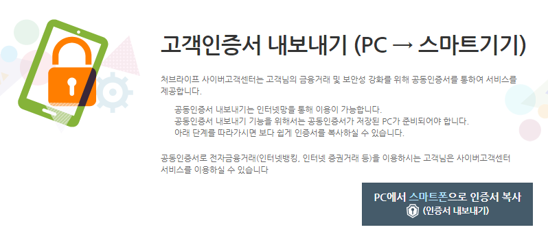 공동인증서로 전자금융거래(인터넷뱅킹, 인터넷 증권거래 등)을 이용하시는 고객님은 사이버고객센터 서비스를 이용하실 수 있습니다